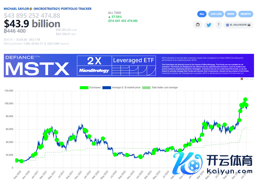 甘休2024年12月30日,Microstrategy共抓有446400枚比特币,价值439亿好意思元。仅在畴昔一年内,该公司就购买了257250枚比特币。