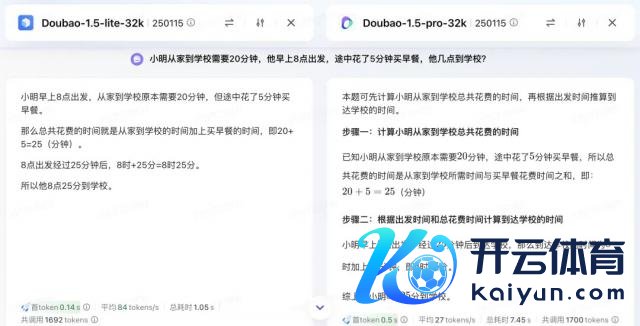 在同期向 Doubao-1.5-lite 和 Doubao-1.5-pro 建议数学和逻辑问题时,豆包通用模子 lite 主打一个快且准、莫得谎话,也简直不需要恭候。是以在一般的简便场景下,你致使会更可爱简便径直的它。