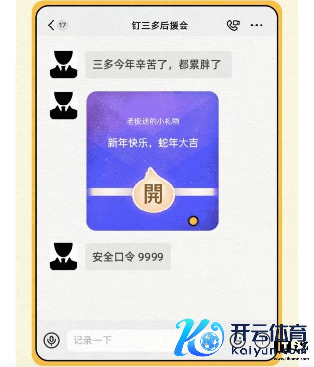 给与礼物的一方,会在钉钉上收到一条紫色红包卡片(小紫包),输进口令、点击收个礼物即可坐等送货上门。