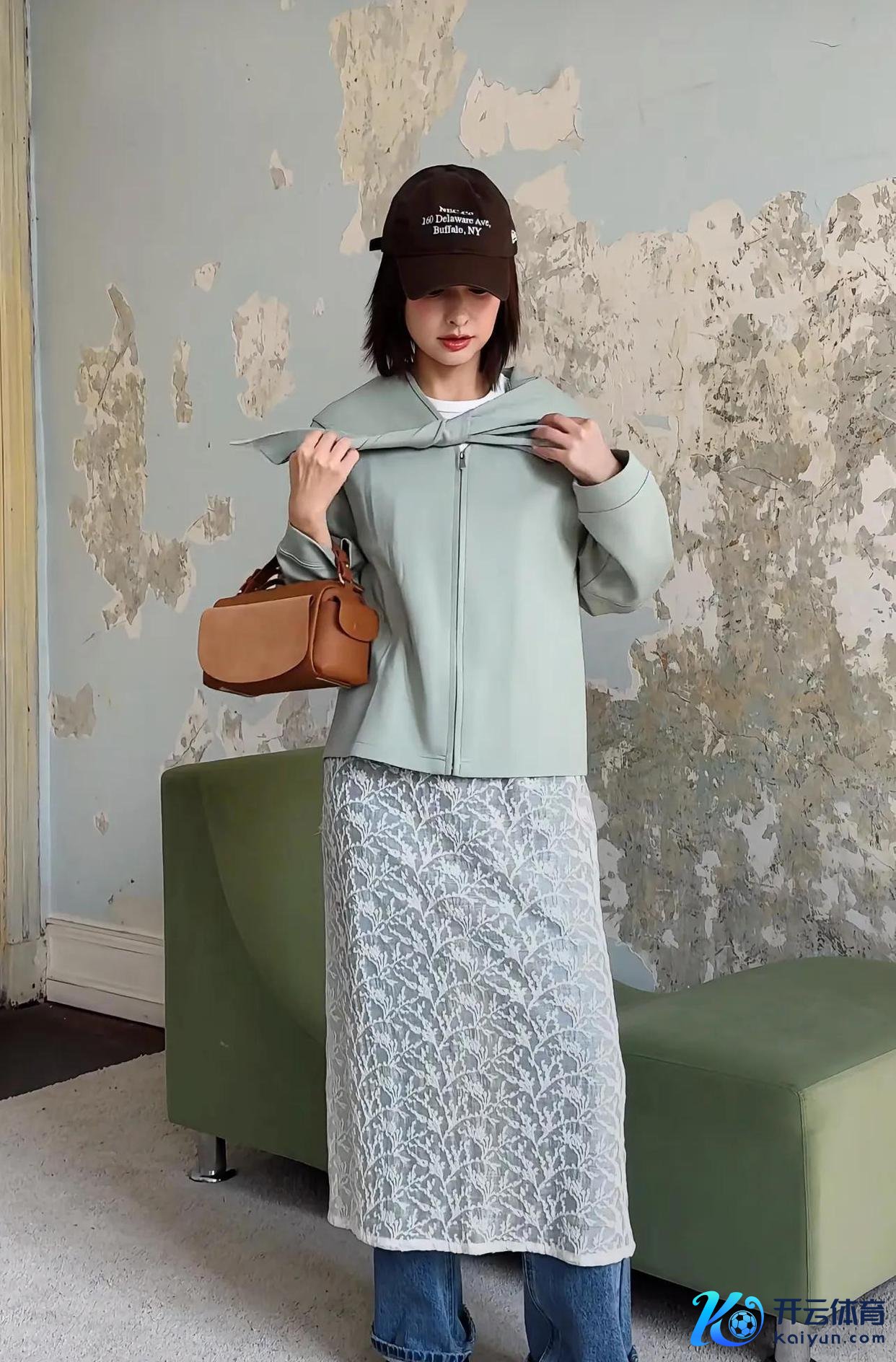 吴昕这身搭配果真把混搭的手段阐扬得大书特书。薄荷绿的拉链开衫搭配蕾丝半身裙,不仅凸显了她的柔好意思与优雅,还带着满满的前锋感。